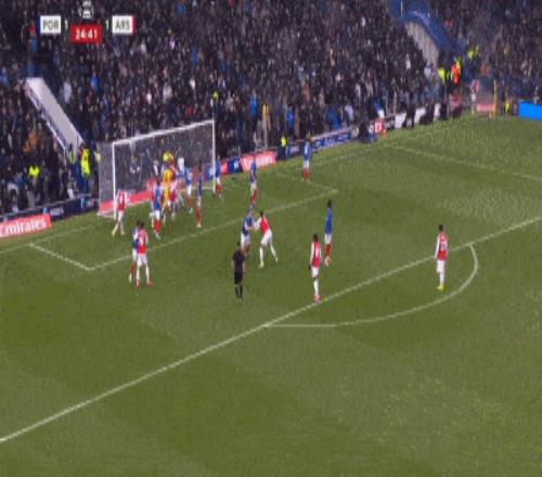 第8分钟,阿森纳角球机会,埃泽将球送入禁区,马丁内利头球后蹭,乱战中多泽尔不慎将球碰入自家球门,阿森纳1-1朴茨茅斯。