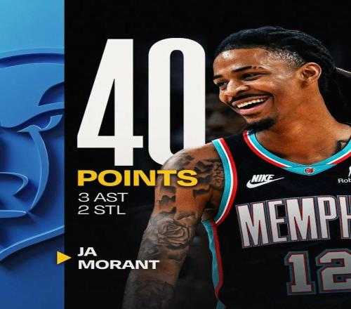 其中对阵76人,莫兰特还打出了个人赛季最佳一战:投篮22中16,罚球10中8,拿下了40分2篮板3助攻2抢断,这也是他生涯第10次40+。